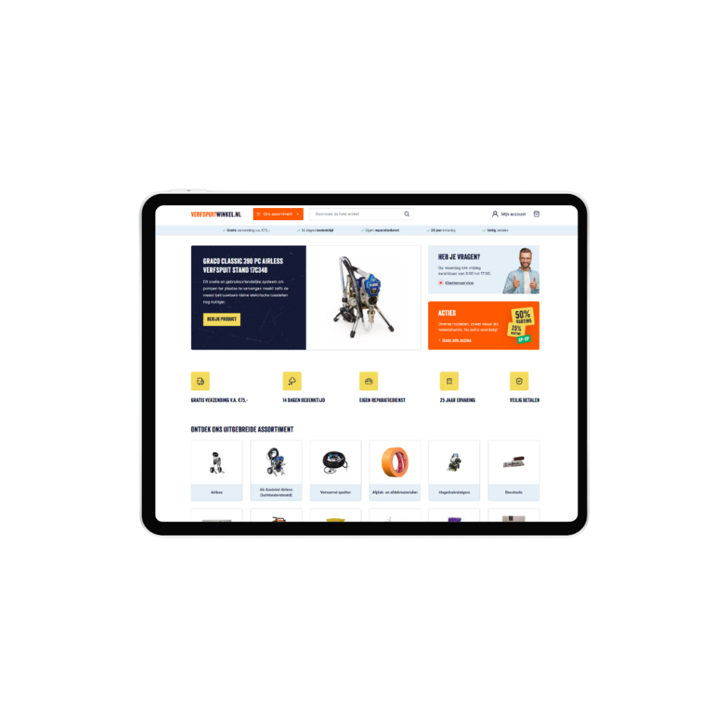 Voor Verfspuitwinkel ontwikkelden we een nieuwe webshop die snelheid en gebruiksgemak combineert, zelfs bij een groot assortiment producten.